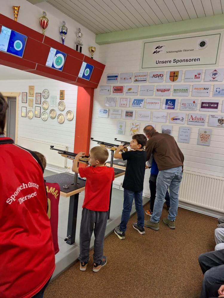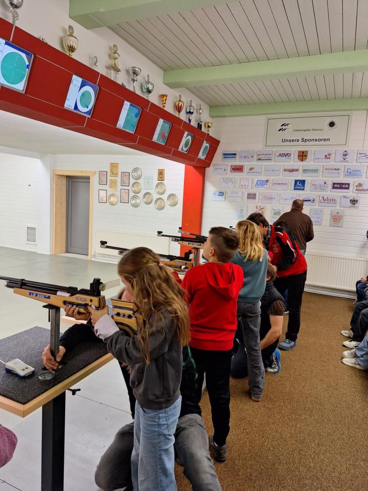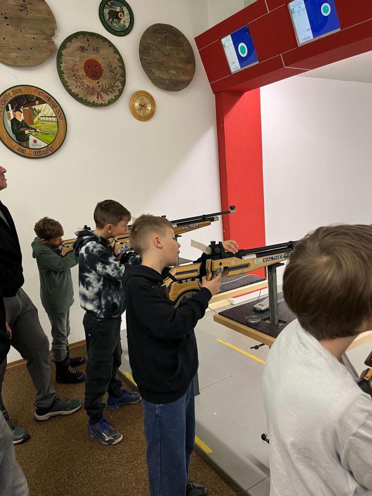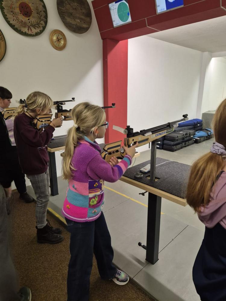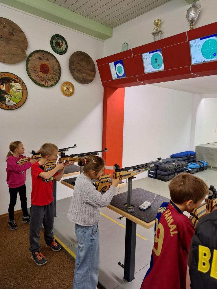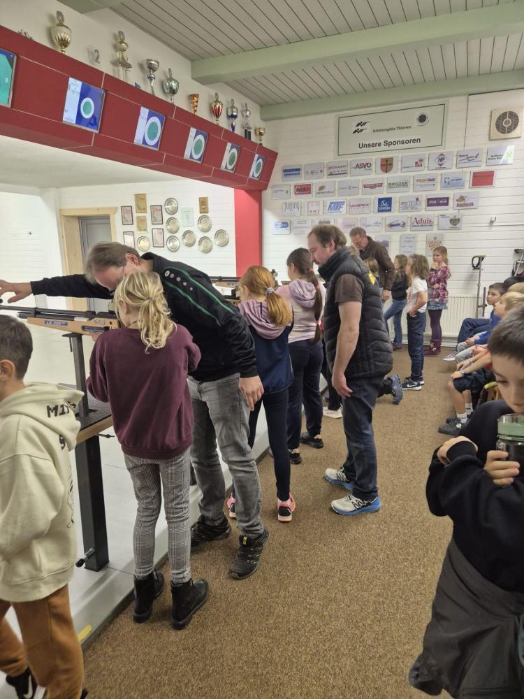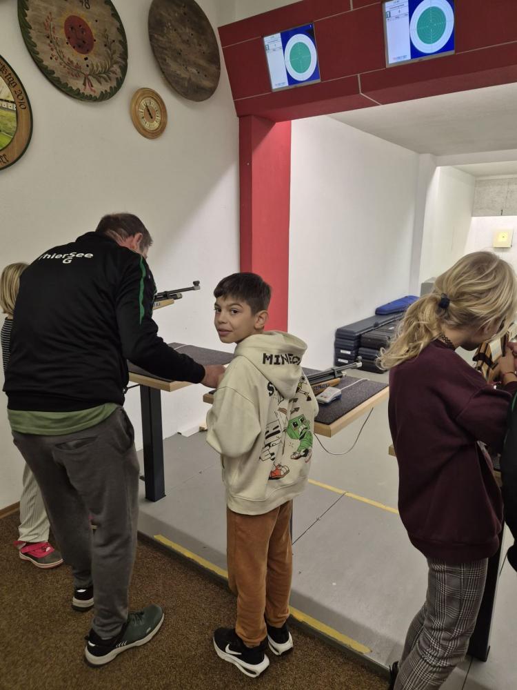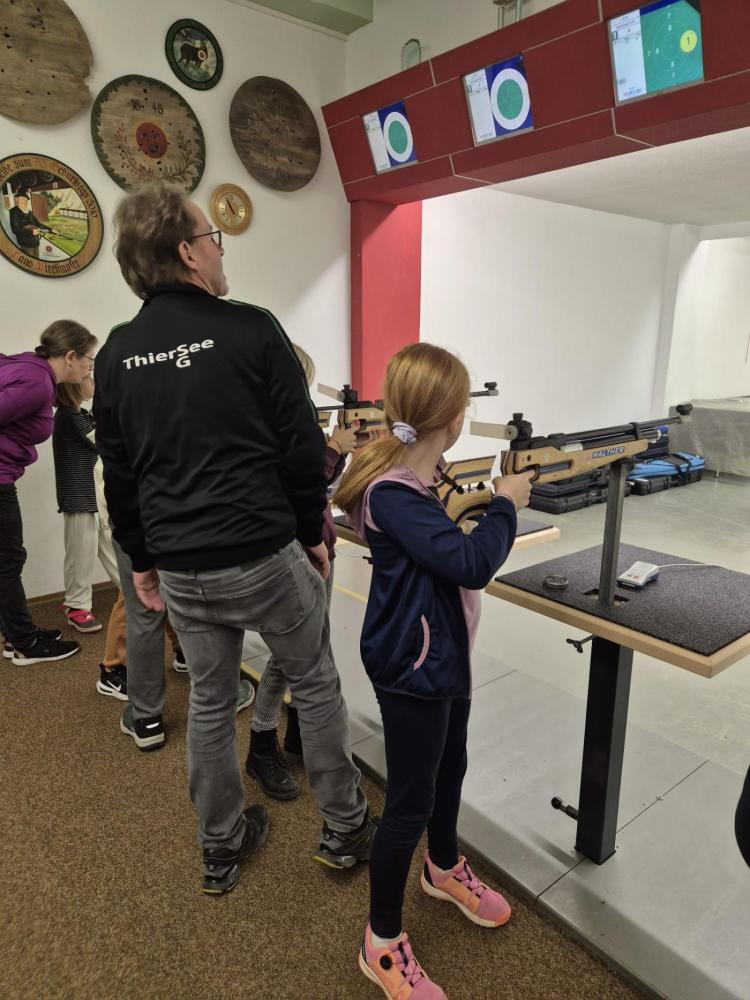 Die dritte Klasse und die beiden vierten Klassen durften letzte Woche das Schützenheim von Vorderthiersee besuchen. Dort wurde ihnen von einigen Mitgliedern, unter anderem von Obmann Fred Nitz, gezeigt, wie man mit Luftgewehren schießen kann. Die Kinder durften die Geräte ausprobieren und sollten dabei probieren auf eine Zielscheibe zu zielen, um Punkte zu sammeln. Es war eine spannende Zeit und wir bedanken uns, dass wir in die Welt des Schützensports hineinschnuppern konnten.