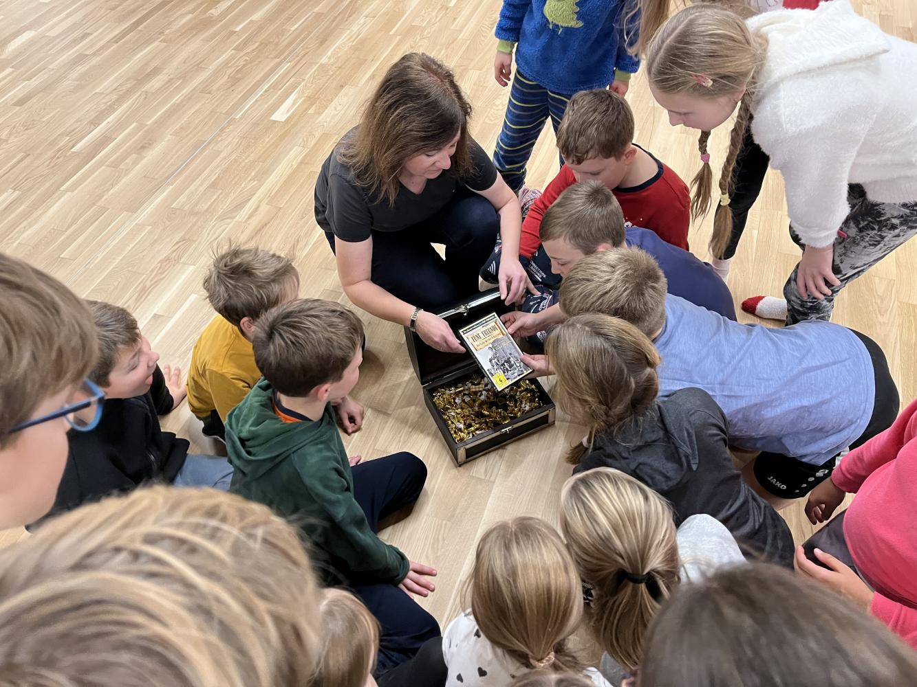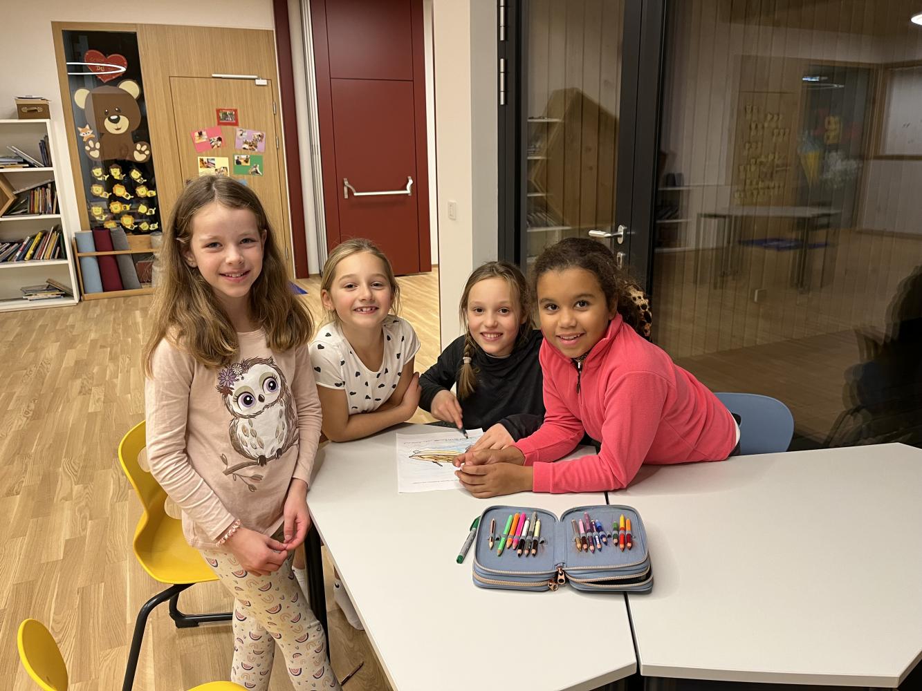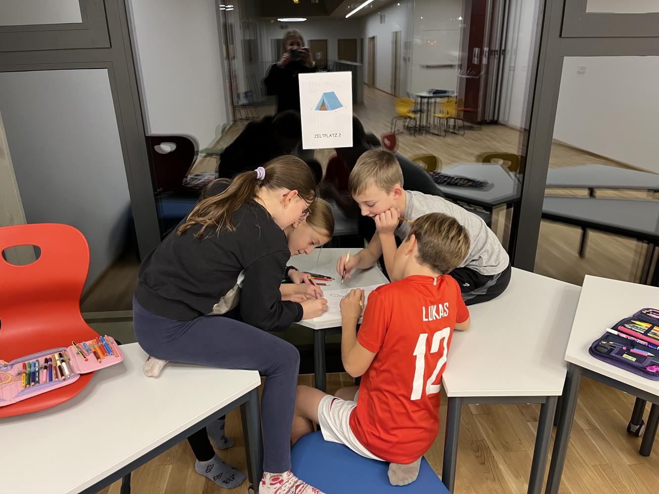 Die Kinder der 4a hatten die große Ehre als erste Klasse in der neuen Schule zu übernachten. In Vierergruppen erledigten sie spannende Arbeitsaufträge rund um das Thema „Fünf Freunde“. Im Anschluss daran durfte dann natürlich auch eine Belohnung nicht fehlen, und zwar der passende Film dazu – „Fünf Freunde – Die Sache mit der Schatzinsel (aus dem Jahr 1957 in schwarz-weiß). Wider Erwarten der Lehrpersonen schafften es alle Kinder während des Filmes wach zu bleiben und so konnte im Anschluss noch fleißig gelesen werden. Einige tapfere Nachteulen schafften dies sogar bis spät in die Nacht hinein.
