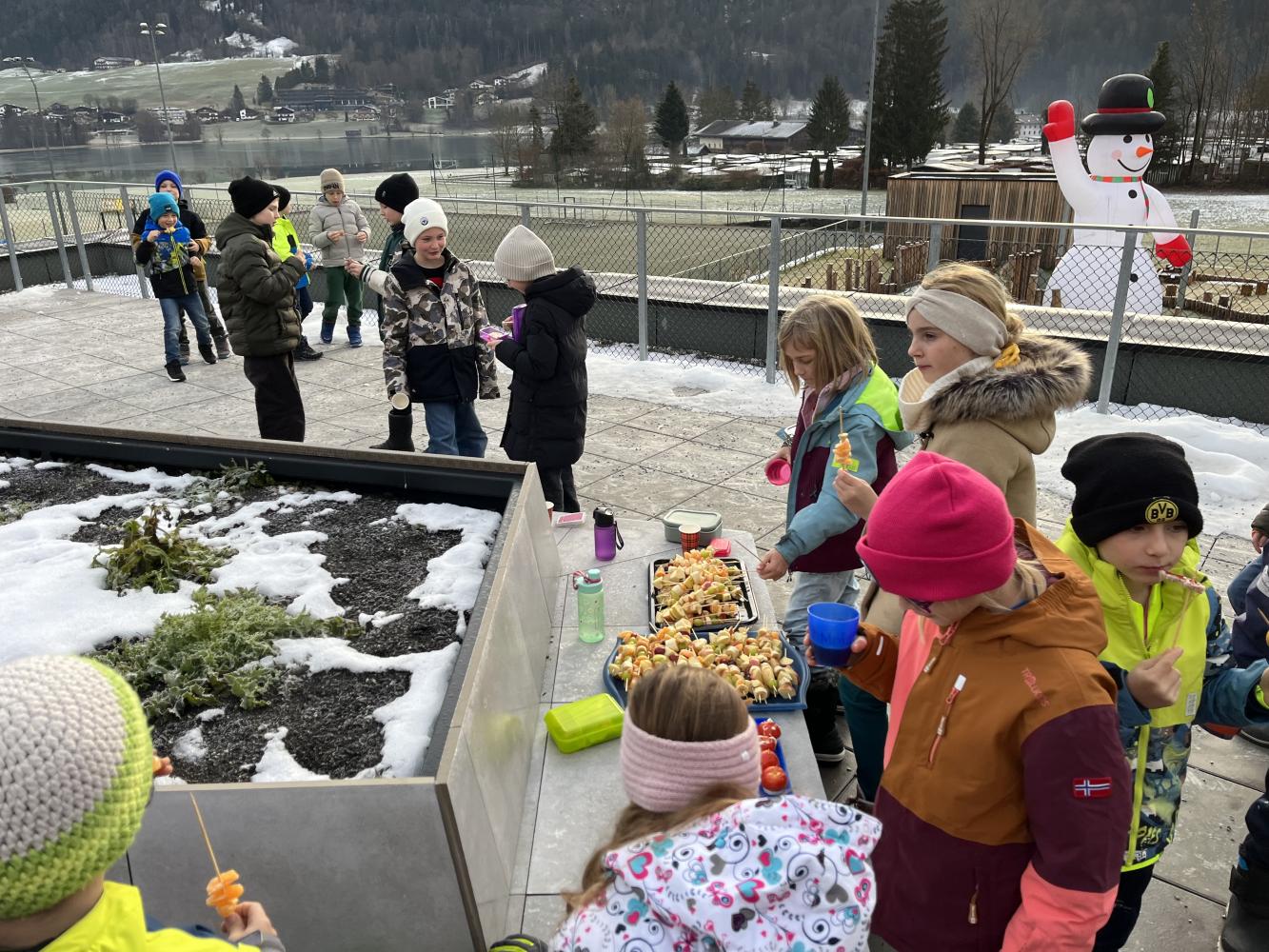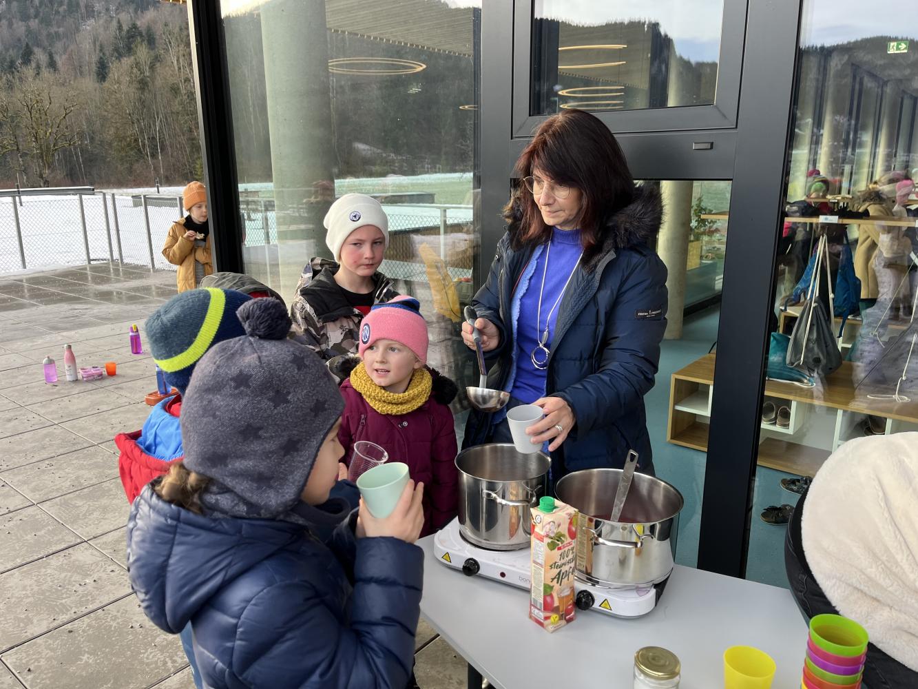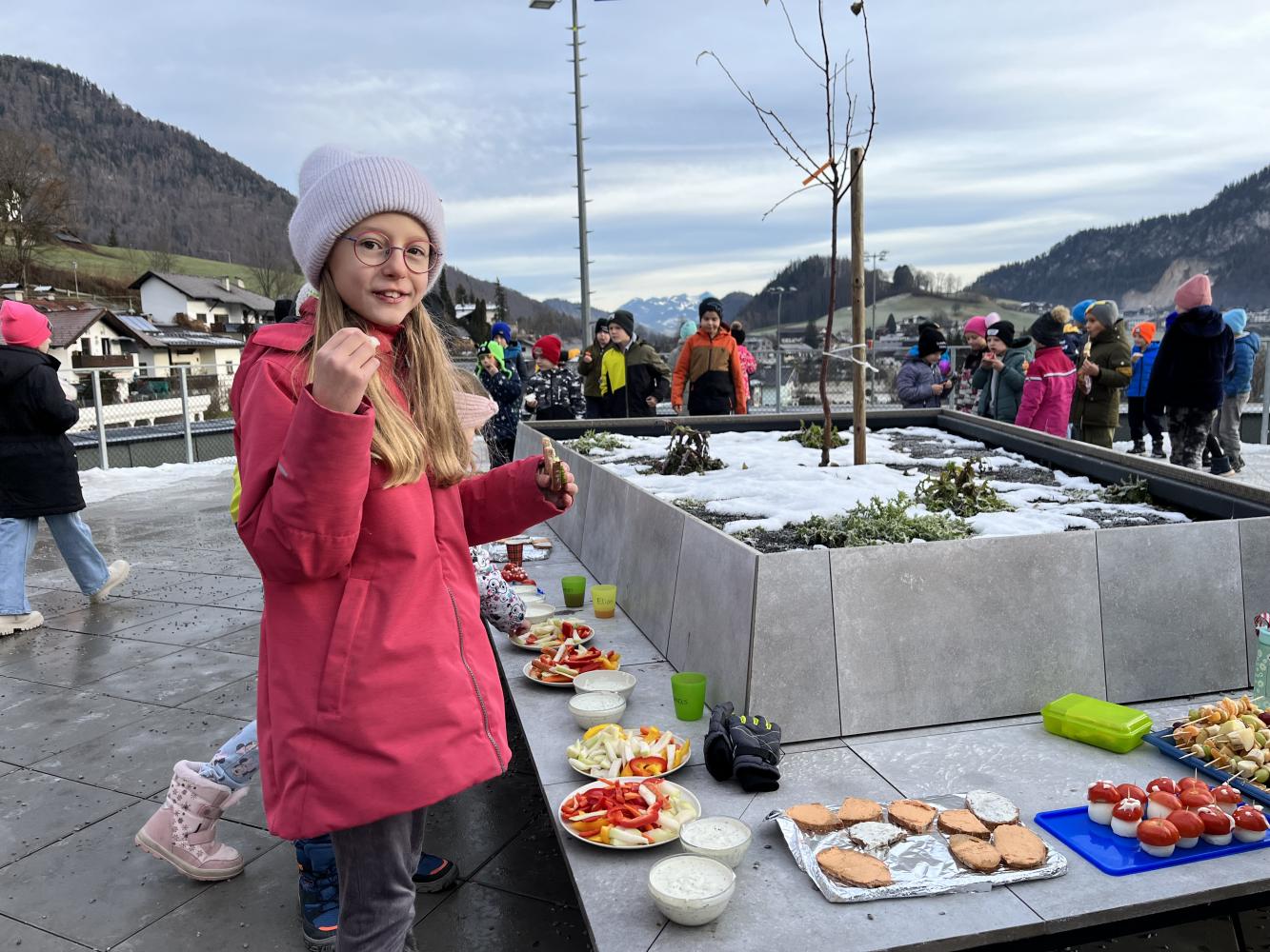Auch heuer führten wir in der letzten Woche vor den Weihnachtsferien unseren traditionellen Weihnachtsbrunch durch. Jede Klasse bereitete dafür in den ersten beiden Stunden eine gesunde Jause vor, die dann in der großen Pause verspeist werden konnte. Von Broten mit unterschiedlichen Aufstrichen, über Obstspieße, Kinderpunsch und die begehrten „Fliegenpilze“ war alles dabei, um sich für den restlichen Schultag stärken zu können.