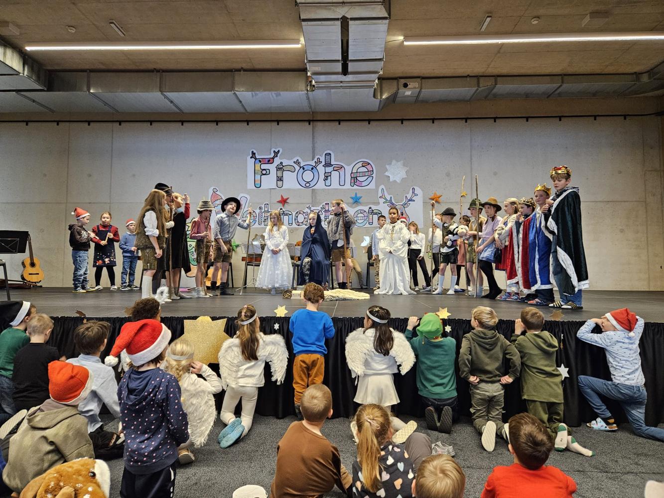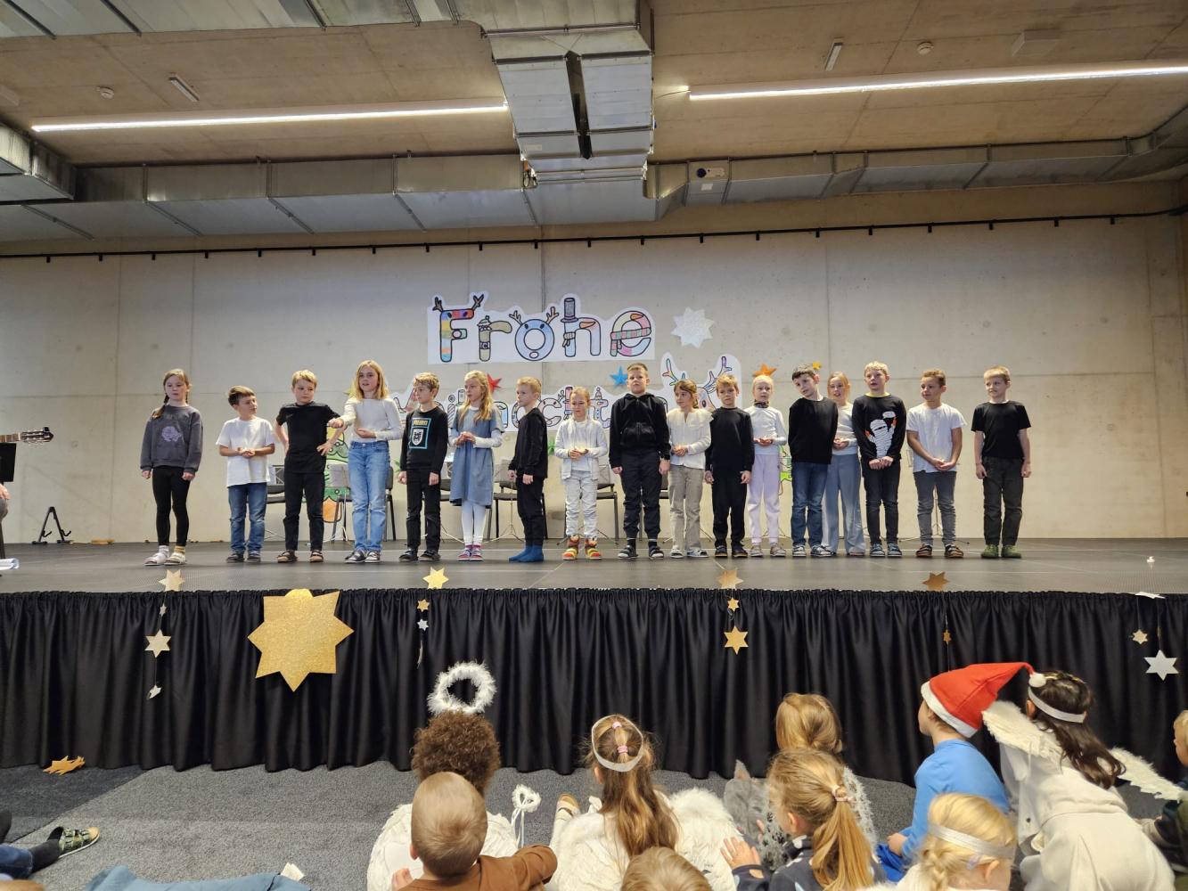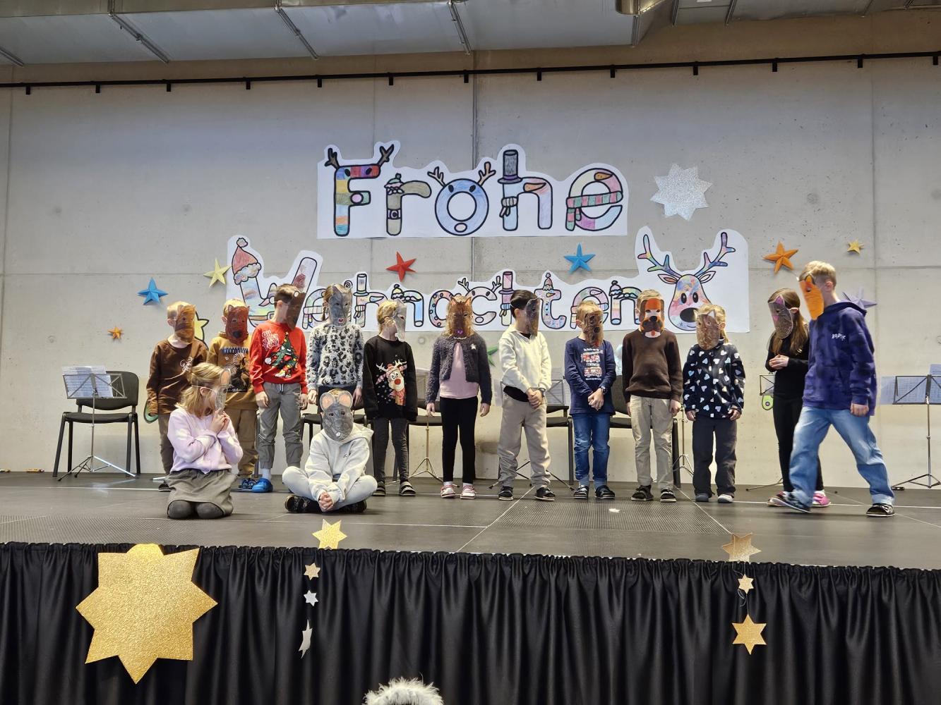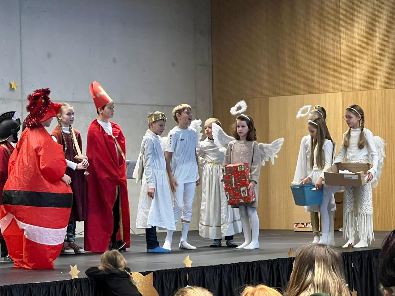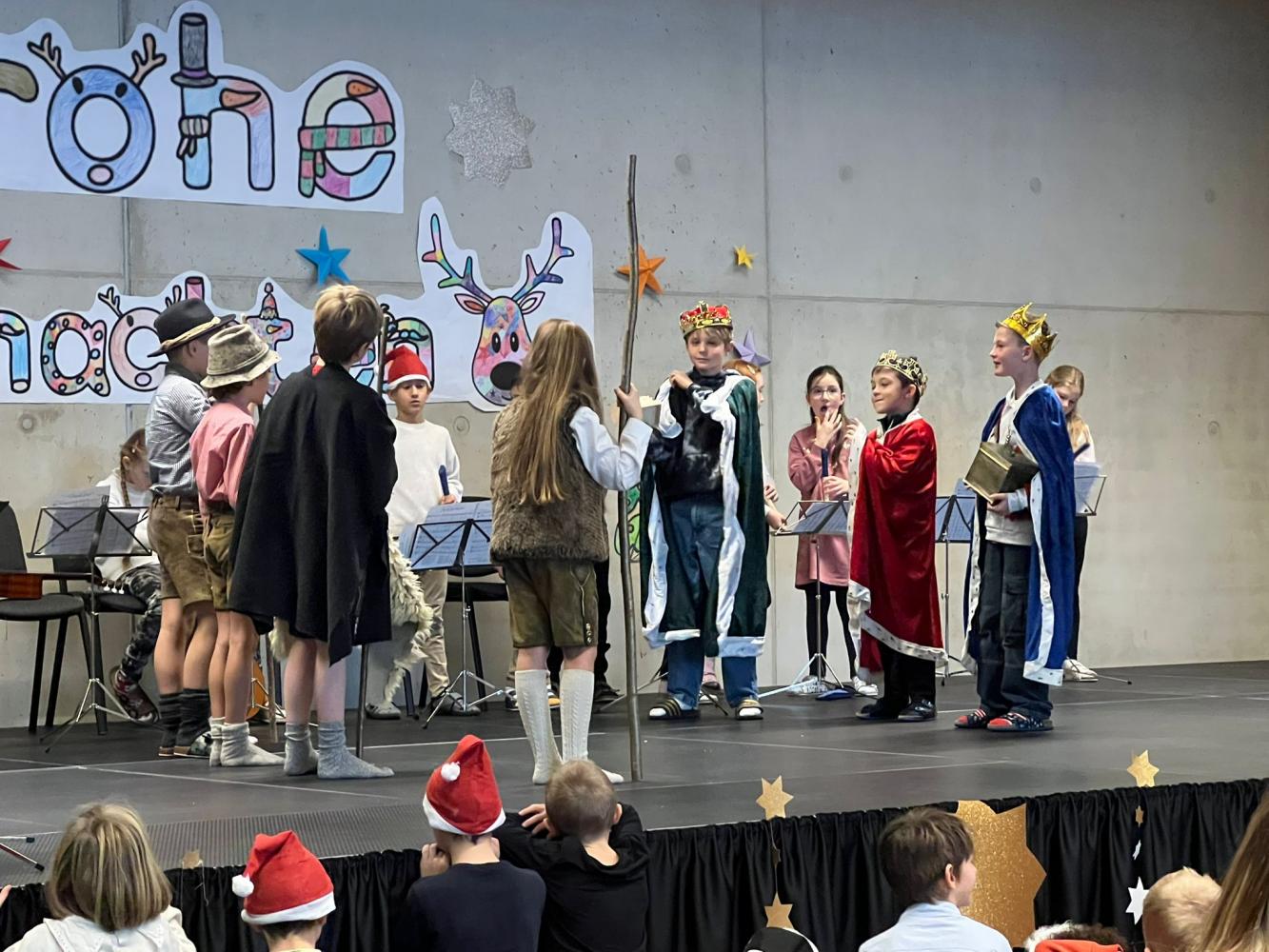 Auch dieses Jahr durften die Kinder wieder ihre Schauspielkünste unter Beweis stellen und konnten vor ihren Familien, erstmals auf der neuen Bühne unseres Bildungszentrums, verschiedenste Stücke vortragen. Beispielsweise wurde uns gezeigt, wie Yoga im Himmel funktioniert; wie ein Osterhase an Weihnachten zu Besuch kommt oder wie das Christkind und der Weihnachtsmann einen Streit lösen. Alle haben ihre Aufführungen bravourös gemeistert, worauf sie sehr stolz sein können. Eine gelungene Weihnachtsfeier!